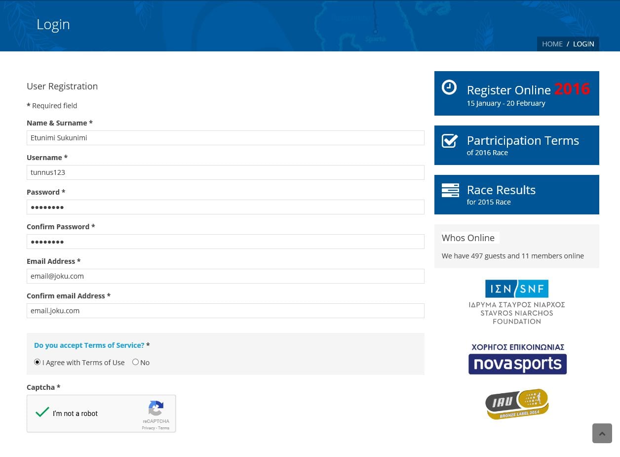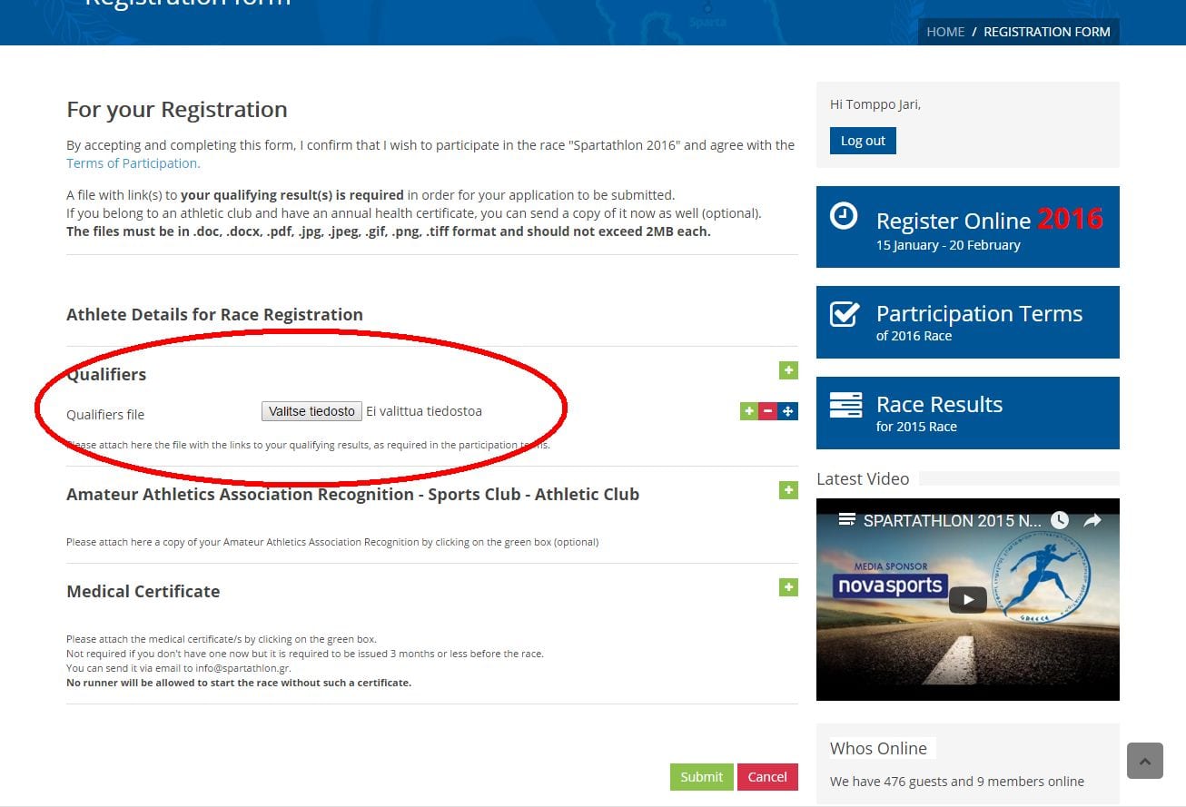 Lomake on kohtuullisen yksiselitteinen, mutta pidempään elämästä nauttineita urheilijoita ilahduttaa erityisesti pakollisen syntymäaikakentän täyttäminen, joka tehdään naksuttelemalla valikkoa kuukausi kerrallaan (!) taaksepäin koska kreikkalainen webbikoodari ei ole osannut tehdä datepickeriä, josta voisi valita vuoden (!?).